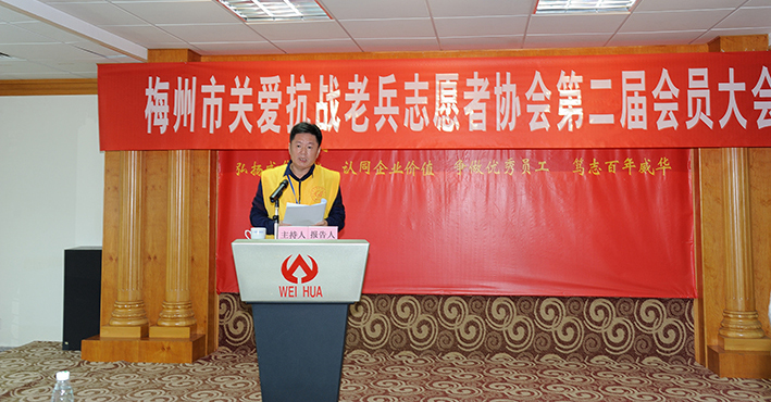 梅州市民政局副局长陈汉杰、市委宣传部副调研员张伟辉、团市委副书记赵旭、民革梅州市委副主委叶洁应邀出席大会。协会60名会员参加大会,协会名誉会长李建华从澳洲发来贺电,祝贺协会顺利完成换届选举,并寄望新一届领导班子团结一致,开拓务实,带领会员进一步做好关爱抗战老兵公益,让老兵爷爷过上更幸福的晚年生活。